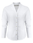 • Linen-blend shirt with Mao collar and adjustable sleeve cuffs
