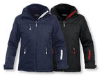 Men's padded jacket with detachable hood, chest, front and sleeve pockets. Elastic drawstring at hood and bottom hem. Bottom sleeve is adjustable with Velcro.