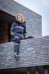 Shell jacket in wind- and waterproof material, taped seams. Zipper at front covered with flap to prevent wind draft as well as water leakage, press-stud closure. Removable hood, adjustable in two ways with drawstring at front and with vire system at the back. Side pockets on both sides, generous breast pocket on the right side and one inner pocket on the left side, all pockets with zip closure. Adjustable sleeve ends with Velcro, adjustable hem with drawstring. Laundry chip pocket in the inner left side seam. Increased visibility EN 17353 Supplied in a bio-based, compostable bag.